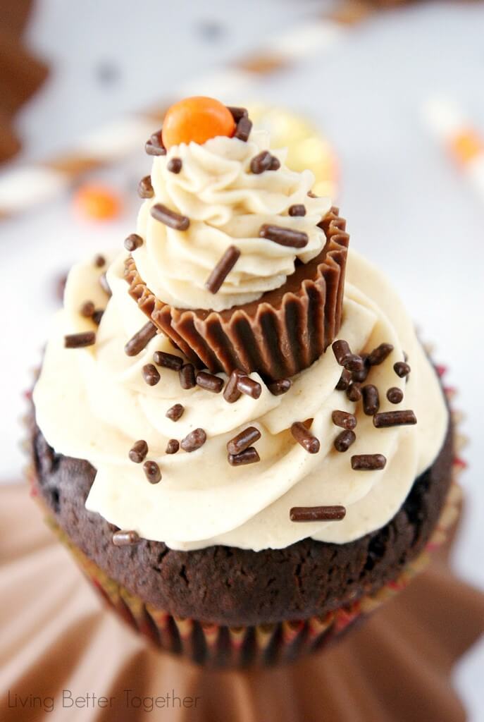 Baked Perfection: Chocolate Cupcakes with Peanut Butter ... from i.pinimg.com 2 3/4 cups sprouted spelt flour or whole wheat pastry flour, 1 teaspoon baking powder, 2 teaspoons baking soda, 3/4 teaspoon sea salt, 2/3 cup unsweetened cocoa powder, sifted, 1/2 cup canola oil, 1 1/4 cups light agave nectar, 1 cup soy milk, 1/2 cup firm silken tofu. I rolled chilled cookie dough into small balls and then rolled balls with peanut butter chips in my hand, instead of stirring them into the dough to make sure each little cookie was well covered in chips. Spoon melted chocolate into muffin cups, filling halfway. Cut the chocolate peanut butter cups into sixths and evenly place around the rim of the cake, or decorate as desired! Don't make the mistake of thinking your guests will need. Garnish the chocolate peanut butter mousse cake just before serving! Freeze leftovers for the next. When preparing buttercream, make sure the butter is soft, or it won't you will have leftover chocolate coating.
